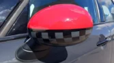 Retrovisores en rojo con banderas a cuadros del John Cooper Works.